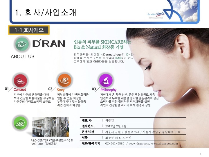 Bio & Natural 화장품 전문기업 D'RAN에 투자하세요.