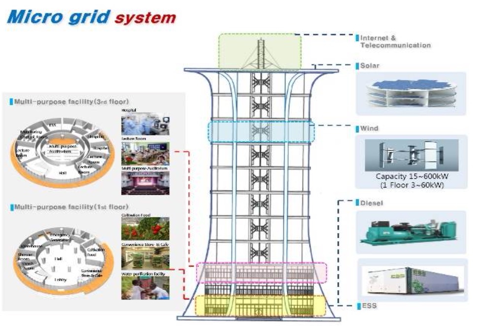 풍력발전설비와는 달리 각 층마다 독립적으로 발전하기 때문에 한 층에서 고장이 나더라도 다른 층의 설비는 정상가동됩니다. 또한 수리시 대형 장비가